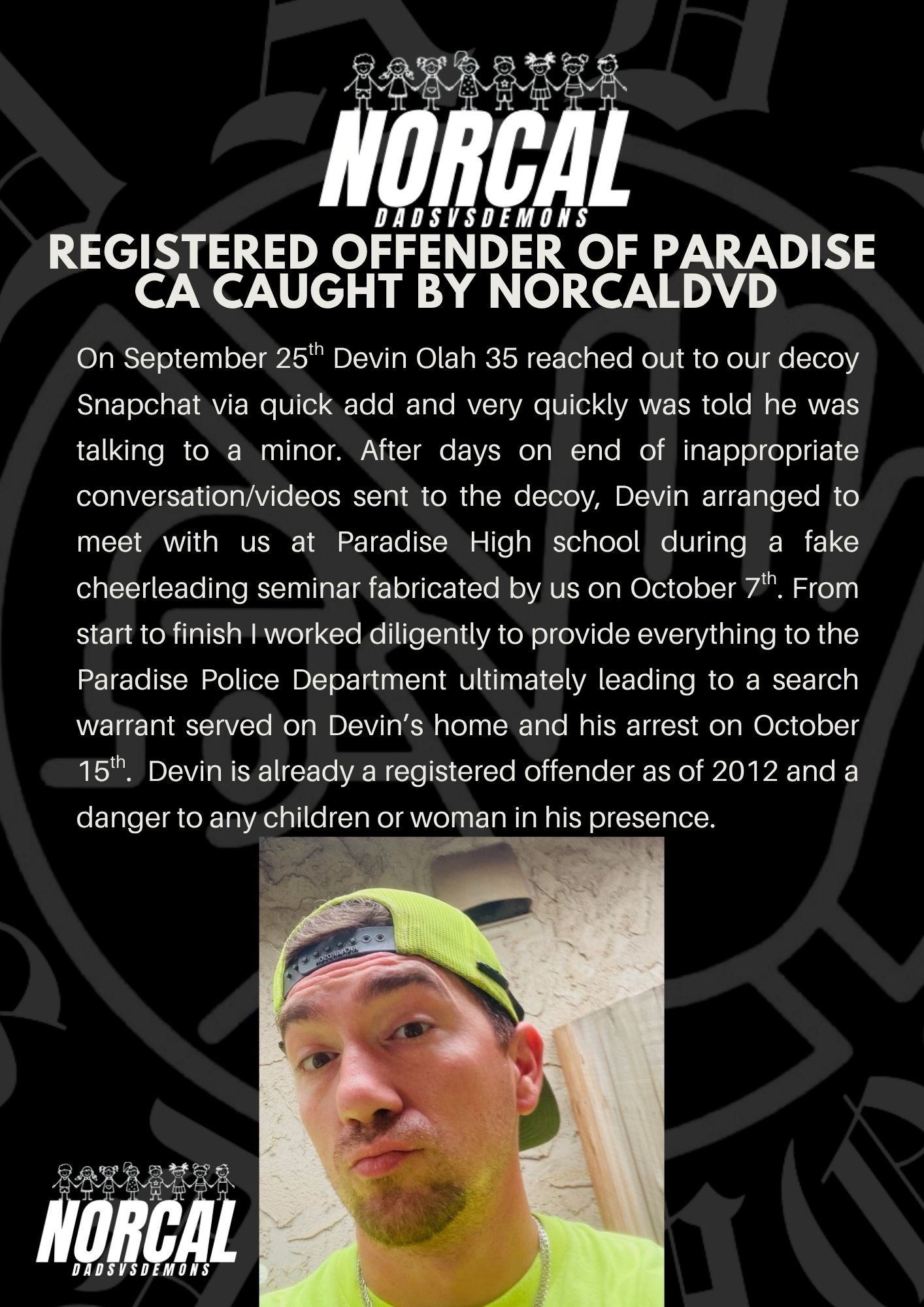 DAPnorcal is an educational group exposing child predators in Northern California. The mission here is for you to put a face to the rat living next door. You walk by pedophiles every day without even knowing it and this is our way of pointing them out to you.
