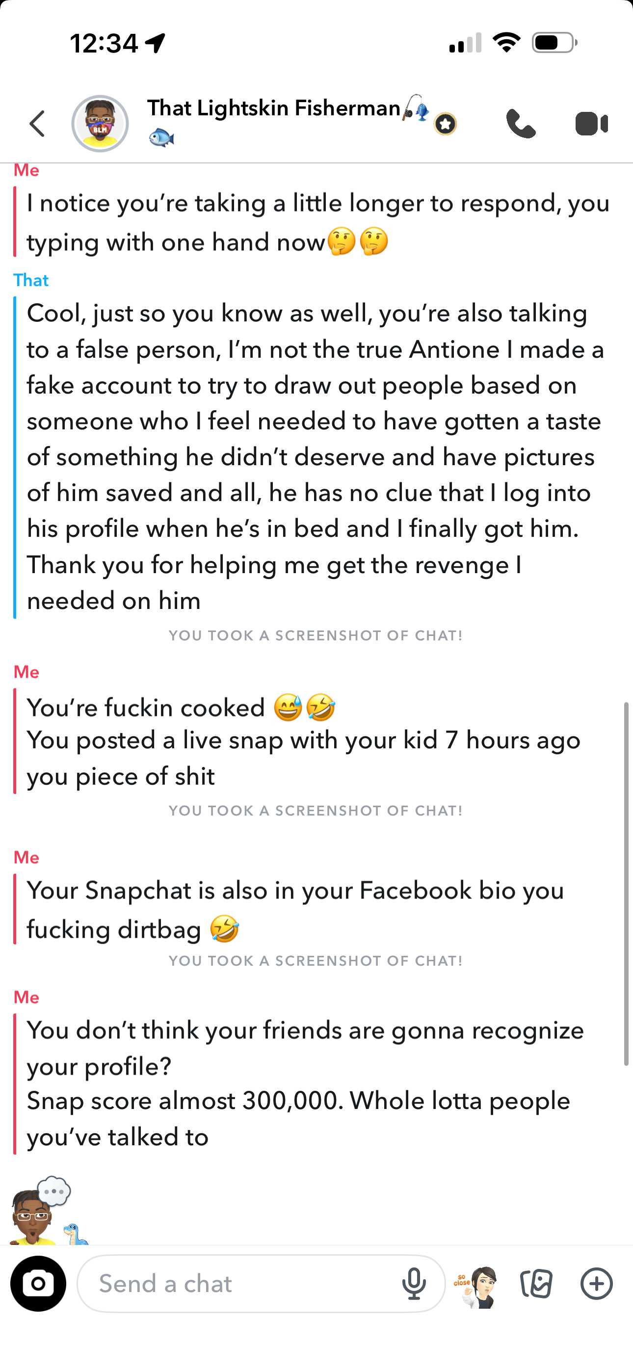 Kareem’s chats once he revealed himself to the decoy. I was able to identify Kareem from his phone number linked to his Snapchat along with a basic records search on Google